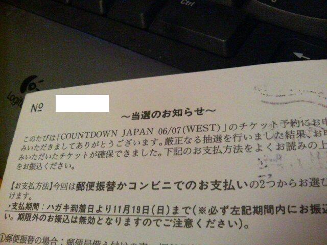COUNTDOWN JAPAN 06/07の大阪会場のチケット当選!!