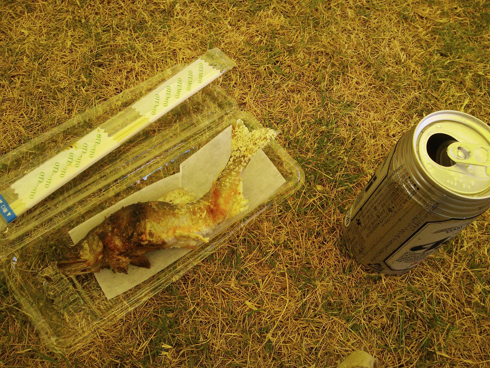 鮎の塩焼きとビール。