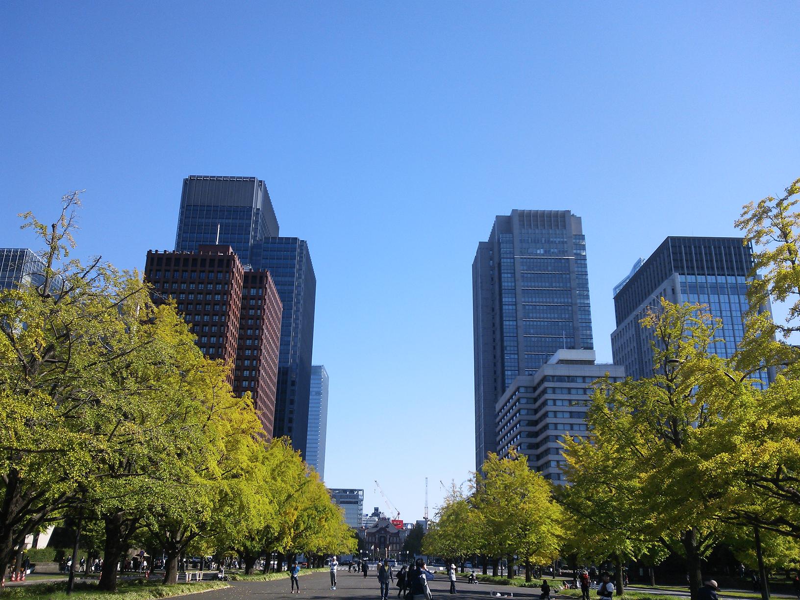 皇居を背に駅方面を。秋だね。