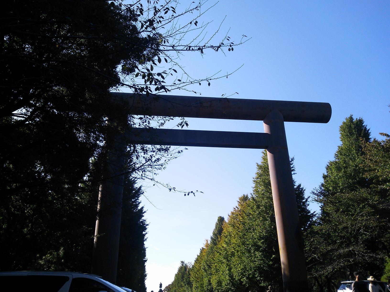 歩道橋を降りると、靖国神社の鳥居。
